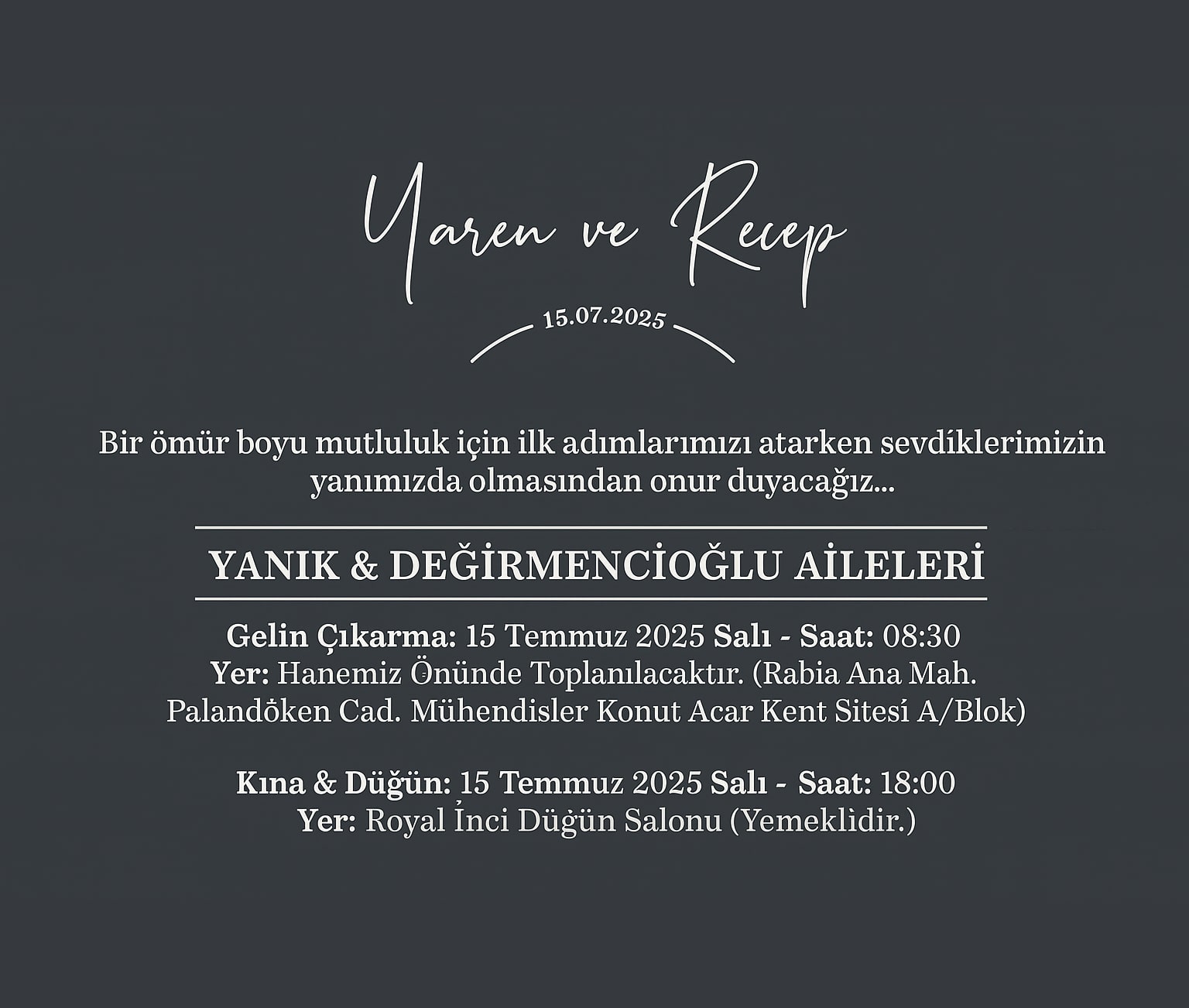 Bir ömür boyu mutluluk için ilk adımlarımızı atarken sevdiklerimizin yanımızda olmasından onur duyacağız...